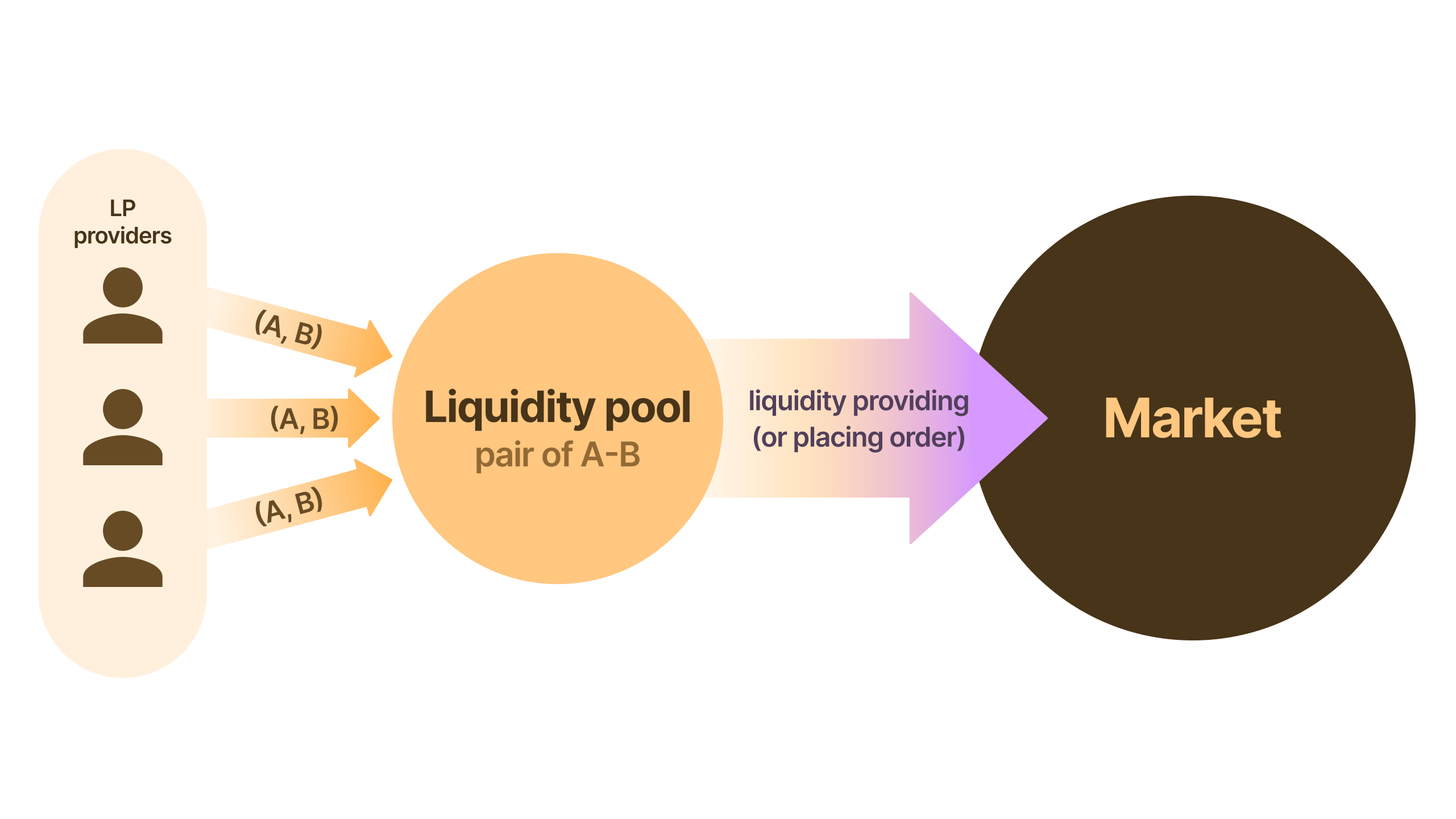 <figure><img src="https://3635471947-files.gitbook.io/~/files/v0/b/gitbook-x-prod.appspot.com/o/spaces%2FmEYtCuIUIqObZPWrSUQb%2Fuploads%2FfJHO9lL0IkguvbuXvztx%2F2.%20Pool%20(1).jpg?alt=media&#x26;token=712d1530-e52b-424a-9b83-b99a00f7cf90" alt=""><figcaption><p>Liquidity Pool and Market</p></figcaption></figure>